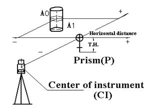 Sometimes we need to measure a coordinate of a point such as A1 whose position cannot place a prism. Assume that we know the horizontal distance from prism to A1. The Distance offset measurement can be used.